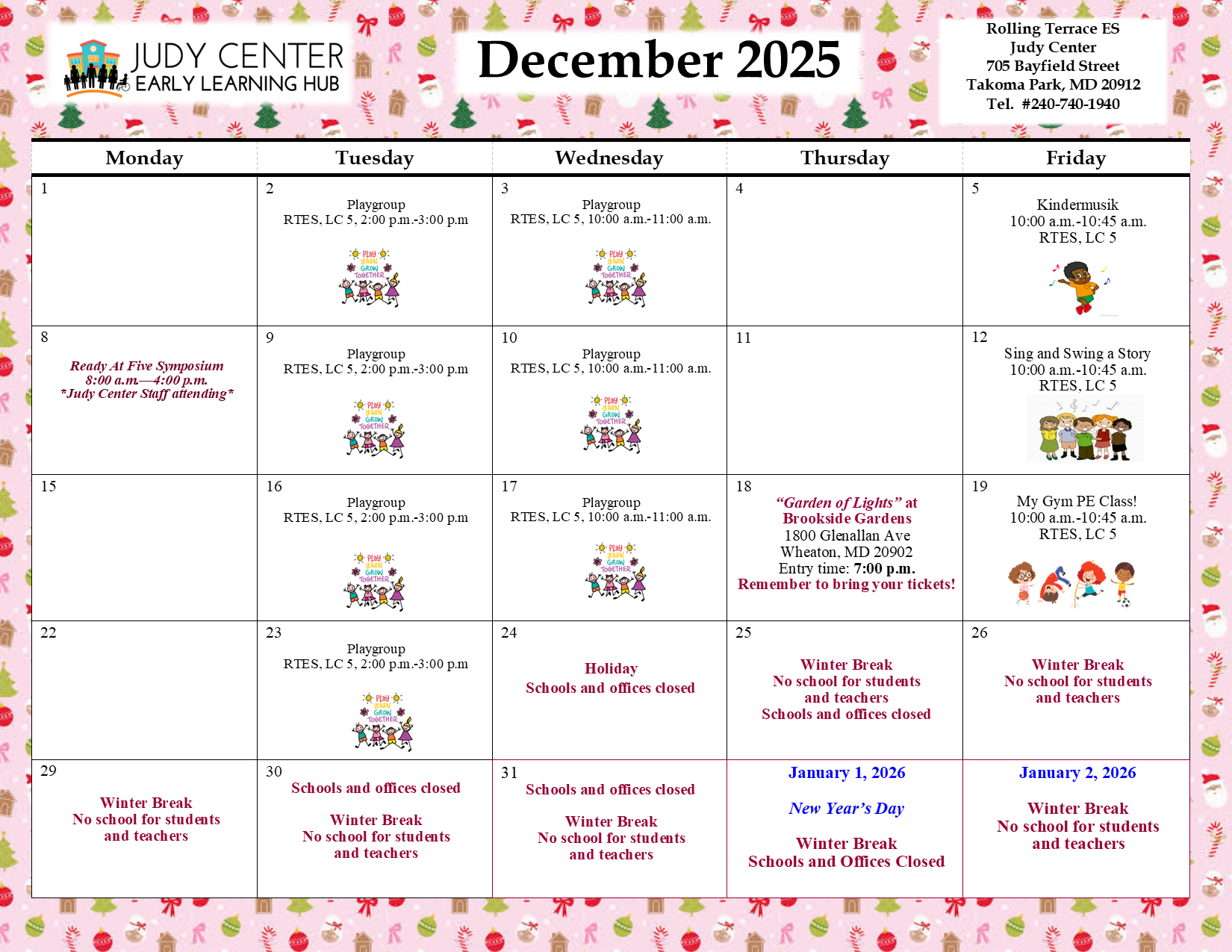 Judy Center programming is developed with funds from the Maryland State Department of Education, Division of Early Childhood.
