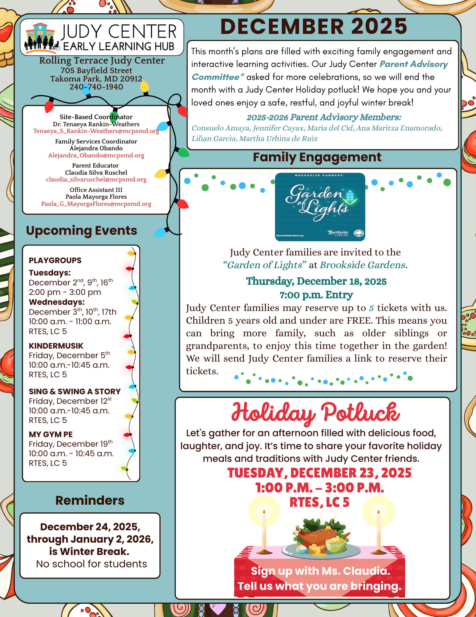 Contact the Rolling Terrace E.S. Judy CenterPhone: 240-740-1940