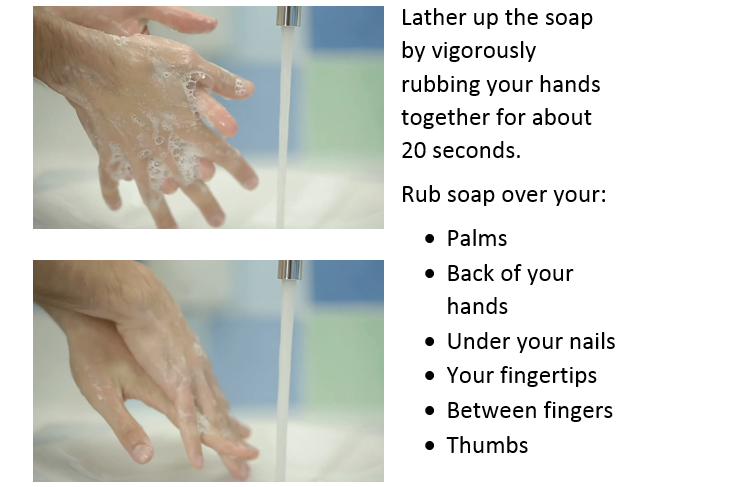Handwashing is a critical deterrent to the transmission of infectious organisms. Handwashing should be encouraged after using the toilet and immediately before eating. Handwashing is essential before and after any situation when hands might come in direct contact with blood, human or animal body secretions, and excretions. The importance of handwashing cannot be undermined by the belief that it is impractical. Adequate handwashing facilities must be available at all times. Good handwashing includes the following procedures: