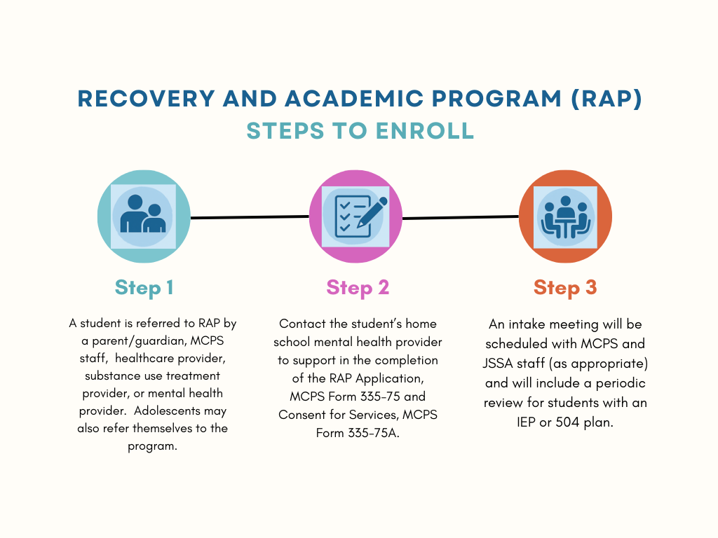 Students may be referred to RAP by a parent/guardian/caregiver, MCPS staff, or a healthcare, substance use treatment or mental health provider.