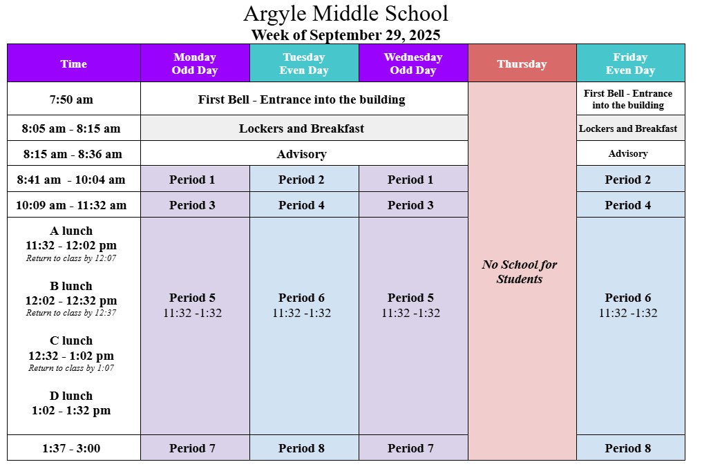 Argyle MS summer school will run from July 7th through August 1st. Click here for more information.
