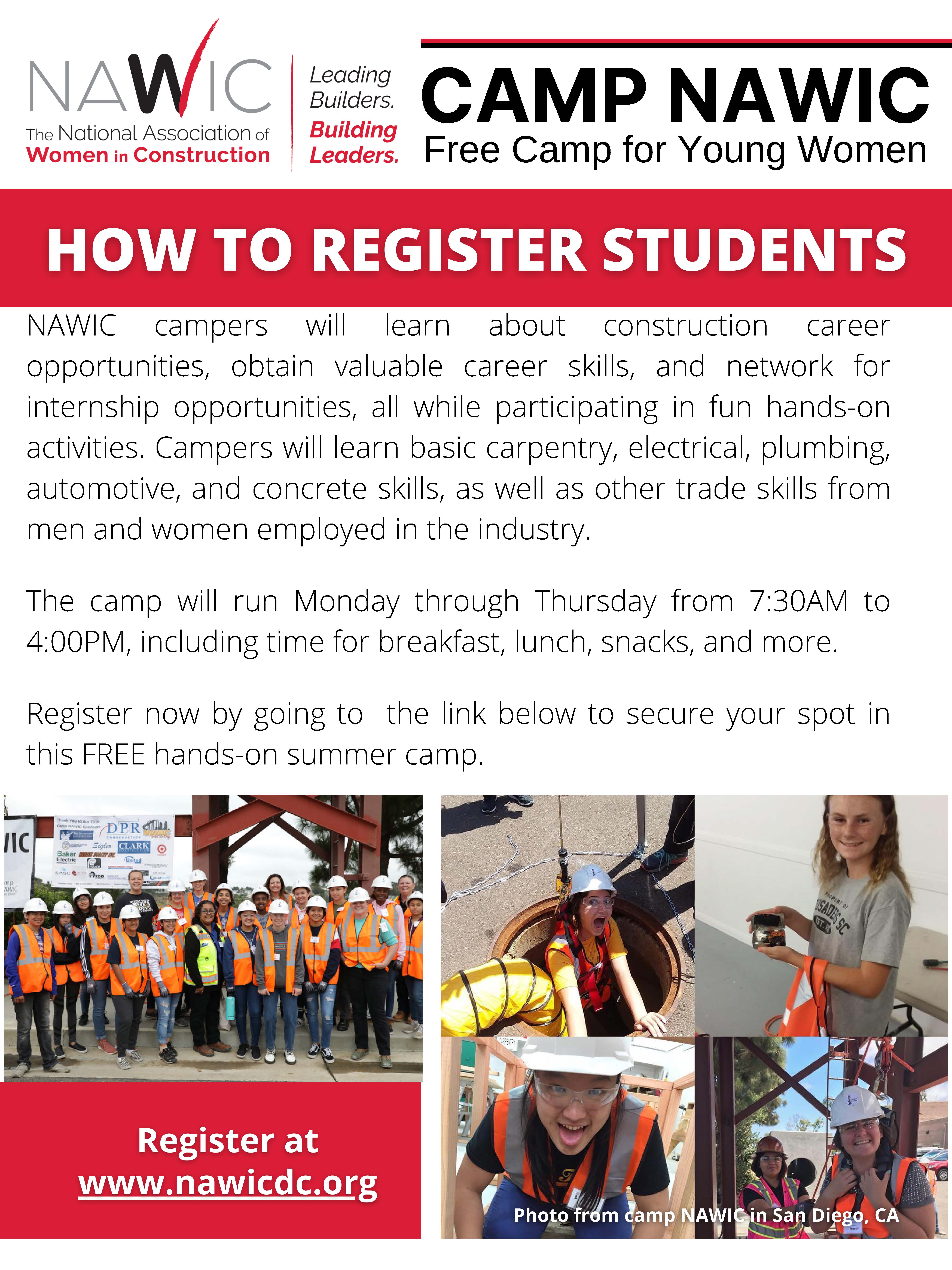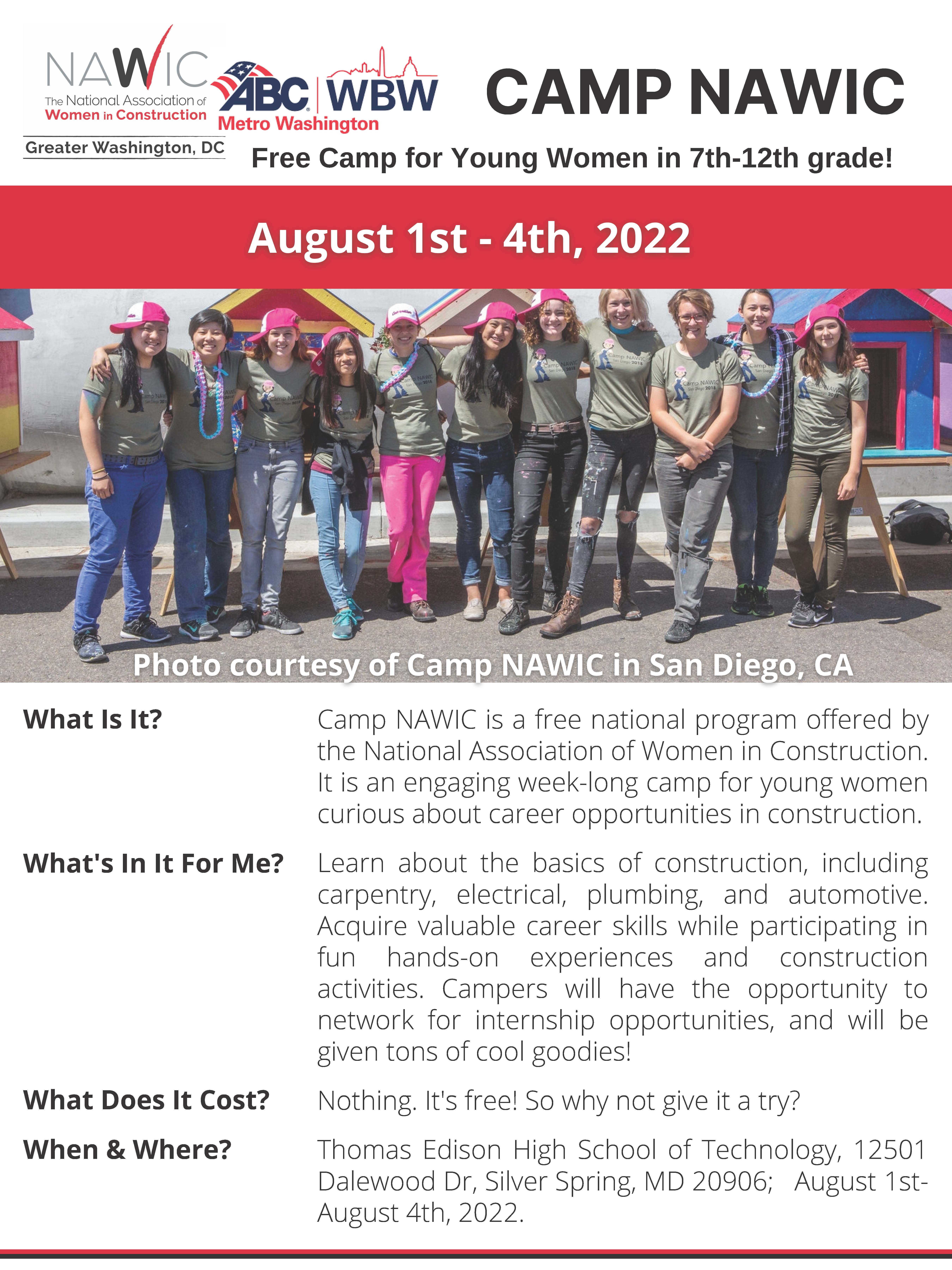 For more information and/or to register for the camp, please visit: https://www.nawicdc.org/event/camp-nawic/