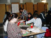 Each month, parents come for Coffee and Conversation. Parents can bring their pre-schoolers and get to know one another. Coffee and light refreshments are offered. At each session, parents are provided with strategies or information to help them to raise their children and support the children's education. In the photos below, parents are participating in a Literacy Party by making "books" to take home and use with their children in the home.