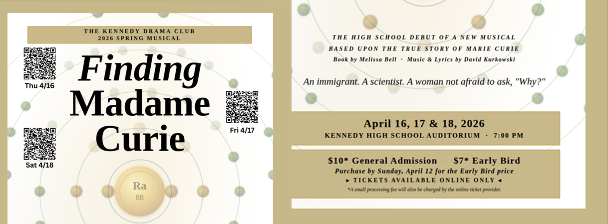 Tickets for FINDING MADAME CURIE, a new musical making its high school debut here at Kennedy, are now available!