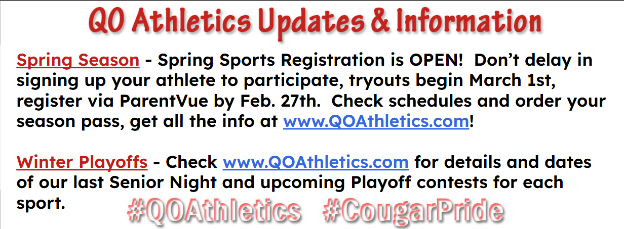 Follow this link for more information on all the exciting things QO Theatre has coming up, and be sure to follow them on X/Twitter and Instagram @qohstheatre. Feel free to email Ms. Vogel with any questions at jessica_hague@mcpsmd.org.