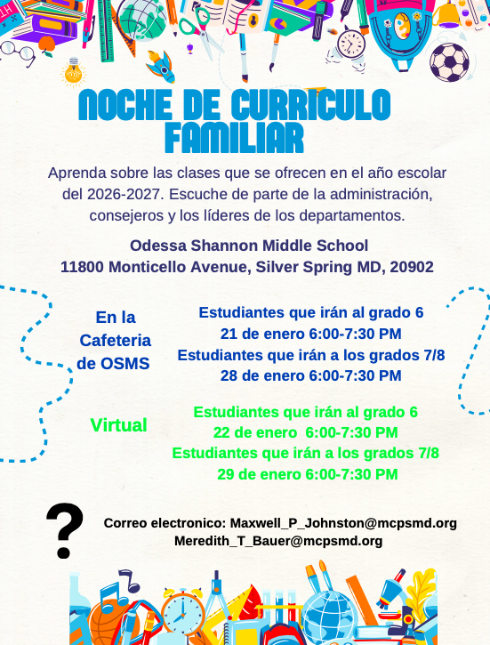 Family Curriculum Night/ Noche del plan de estudios familiar