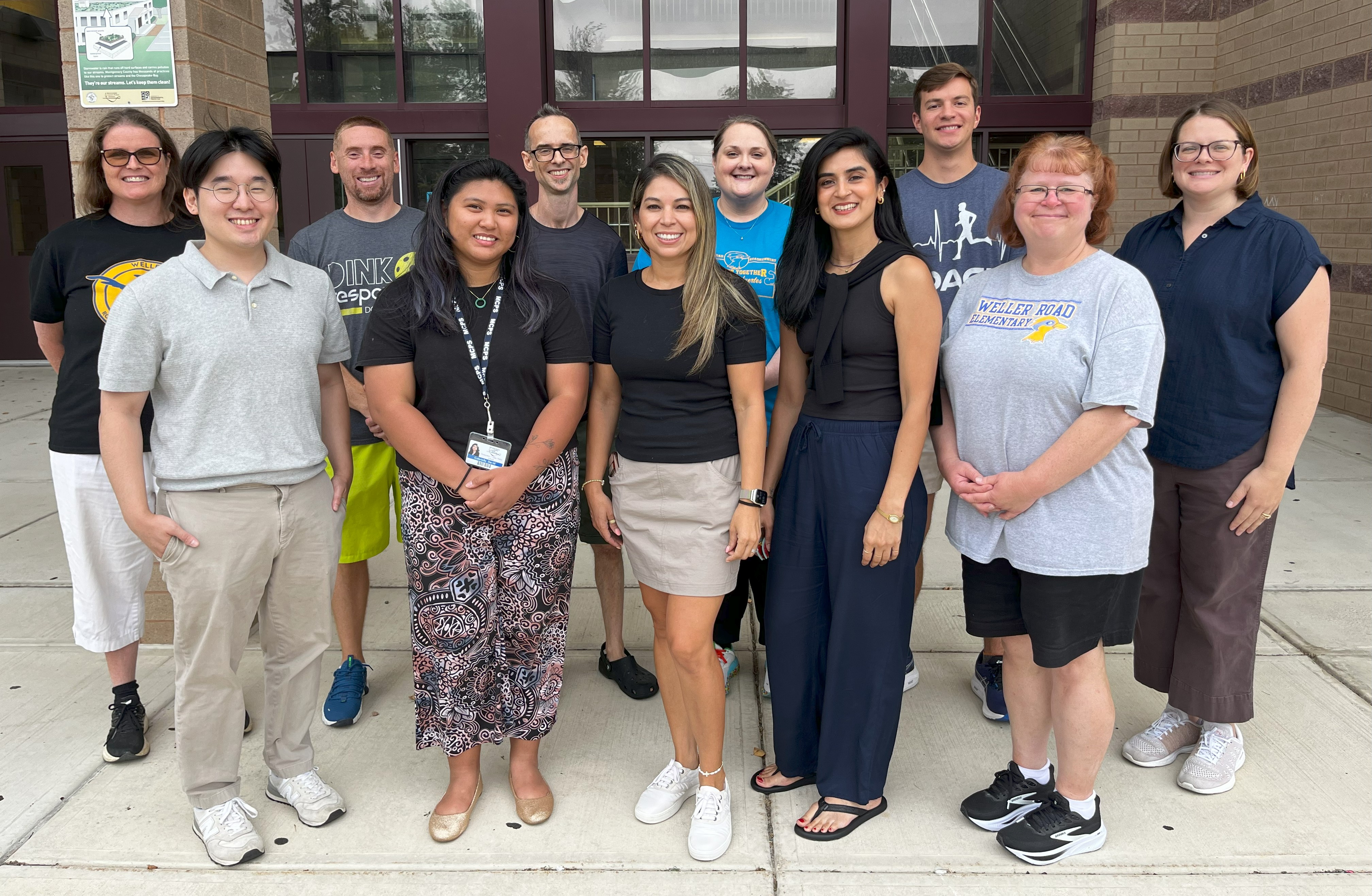 Back Row (from left to right): Erin Cashman (Media Specialist), Gary Lyst, Jr. (P.E.), David Bauckham (Music), Emily McKain (STEM K-2), Patrick Gaegler (P.E.), Allison Fort (Media Assistant)